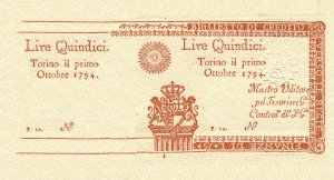 014) Lire 15 Regie Finanze di Torino -non emesso con matrice - 15 ottobre 1794