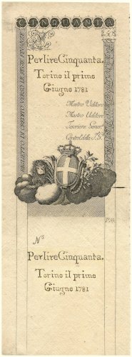 020) Lire 50 Regie Finanze di Torino - non emesso con matrice - 1 giugno 1781