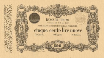 054) Regno di Carlo Alberto - Banca di Torino Lire 500 - 15 settembre 1846 Non Emesso