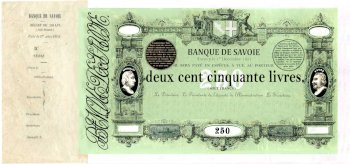 061) Regno di Sardegna - Banque de Savoie 250 Livres - 1 dicembre 1851 non emesso con matrice