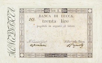 112) Principato di Lucca e Piombino - Banca di Lucca - 30 Lire con matrice - NON EMESSO con firme