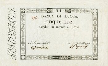114) Principato di Lucca e Piombino - Banca di Lucca - 5 Lire con matrice - NON EMESSO con firme