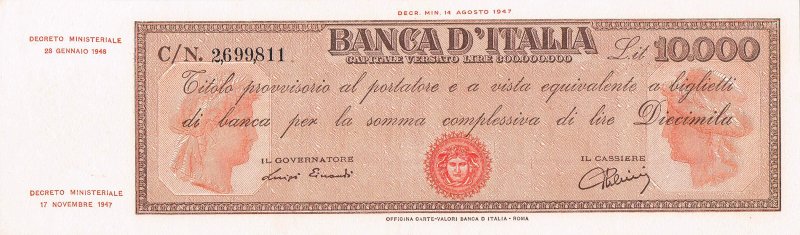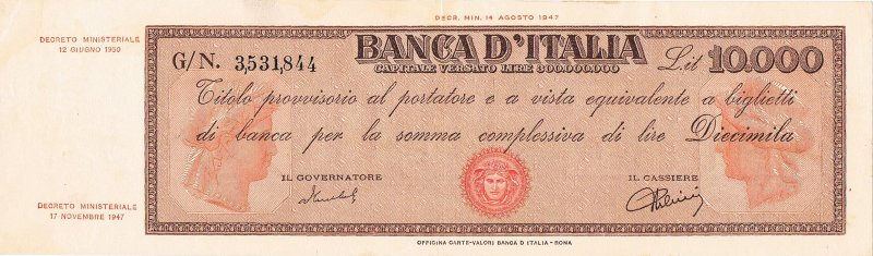 189) Titolo Provvisorio da Lire 10.000 28/1/1948